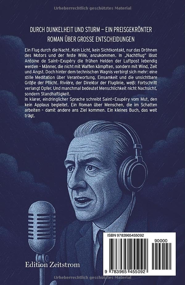 Das Gesamtwerk des Berufspiloten, der die Schriftstellerei nur nebenberuflich betrieb, ist auch wegen seines frühen Todes leider sehr überschaubar. Seine Romane haben die Fliegerei zum Thema und gerade „Nachtflug“ (*) überzeugt mit seiner bildgewaltigen Sprache, die die handelnden Personen sehr treffend mit all Ihren Ängsten und Widersprüchen darstellt.